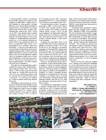 ную корову составил 7145 кг (+786 кг). 7 зерноуборочных и 3 кормоуборочных ком- УНП 200226708 Еmail: bezdegagro@mail.ru